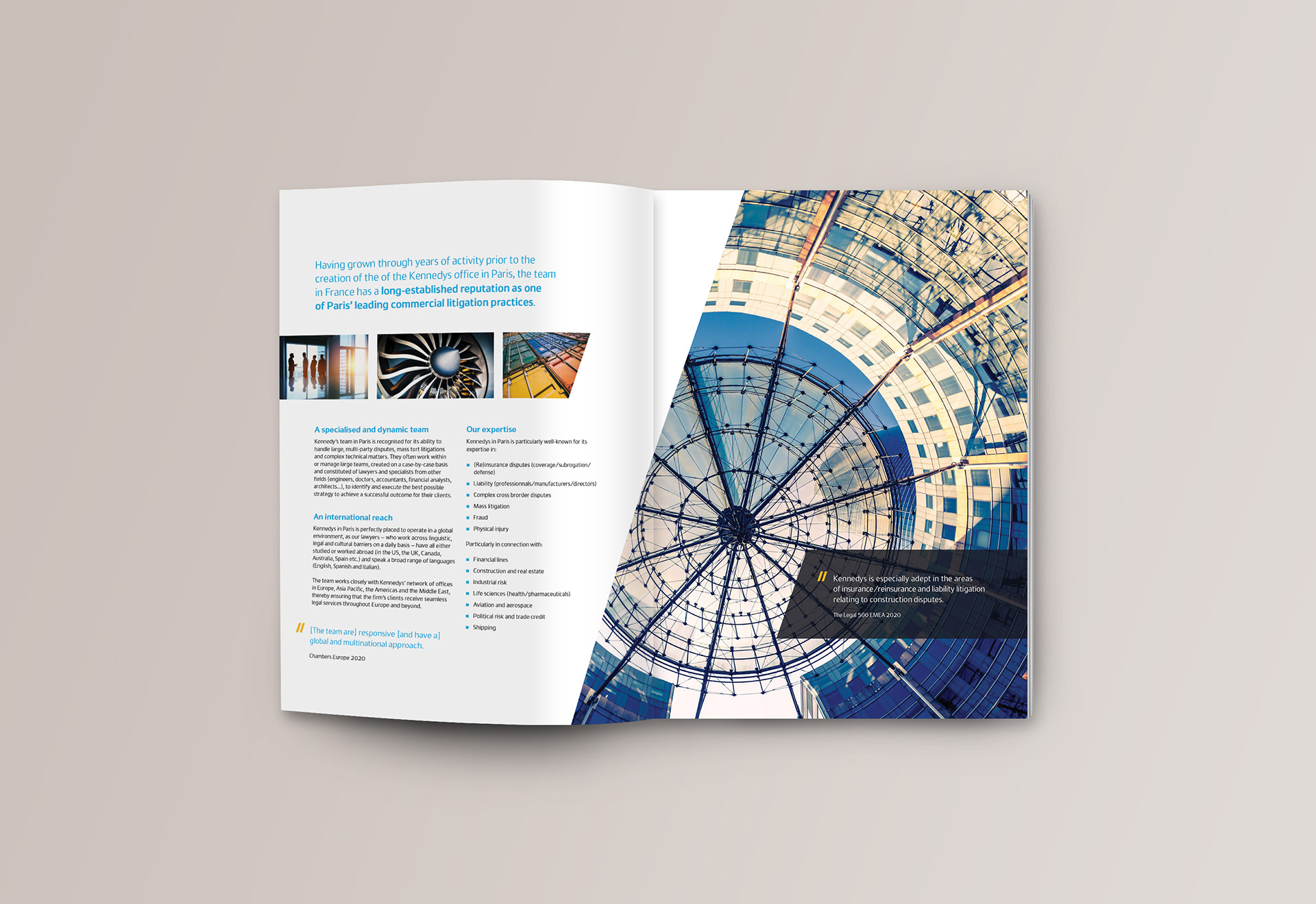 I created a consistent, on-brand style for these regional documents, making full use of the Kennedys 19˚ angle to add visual impact. Content on some of these documents tends to be sparse, so the use of full page photography on the interior helps adds impact.