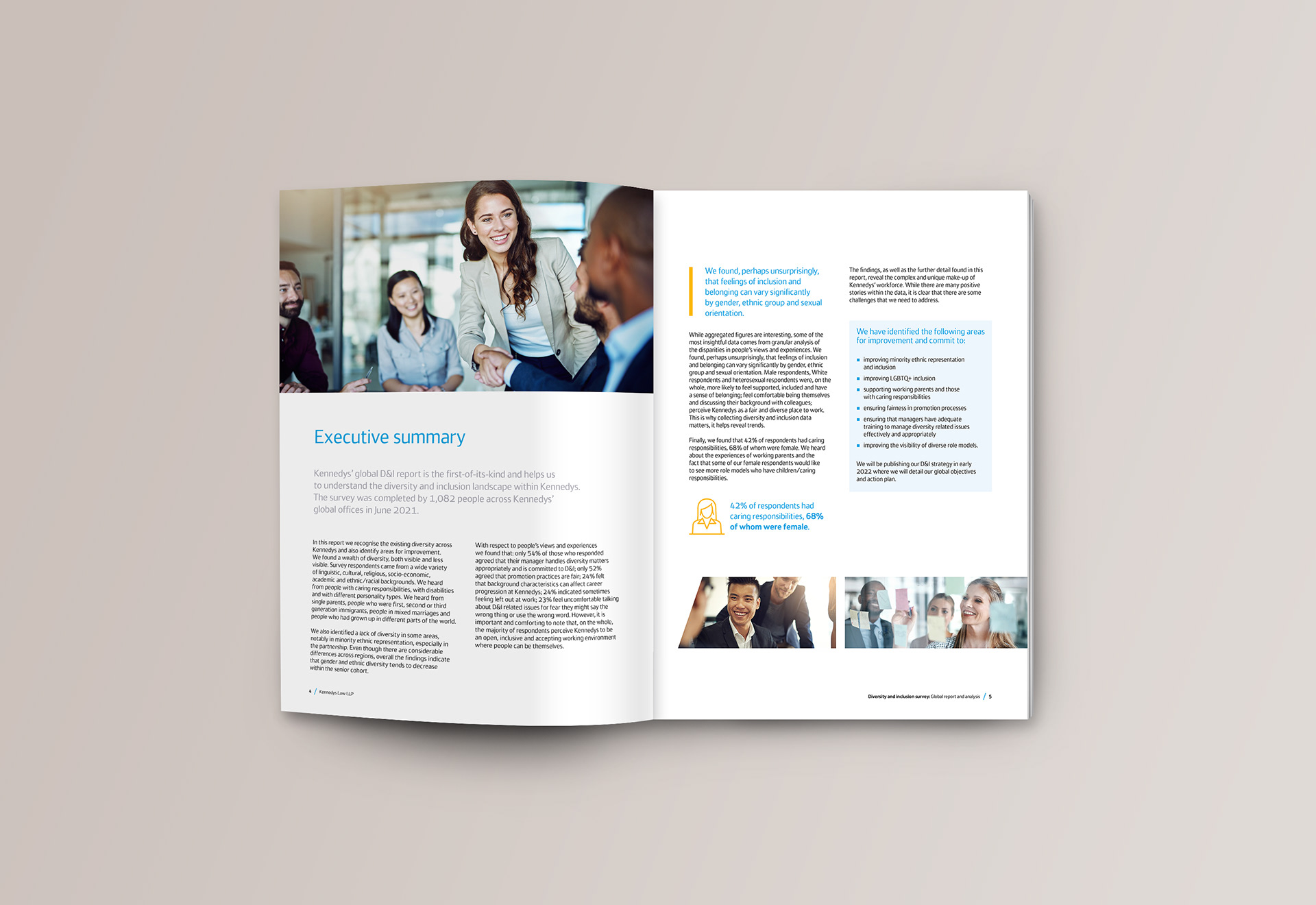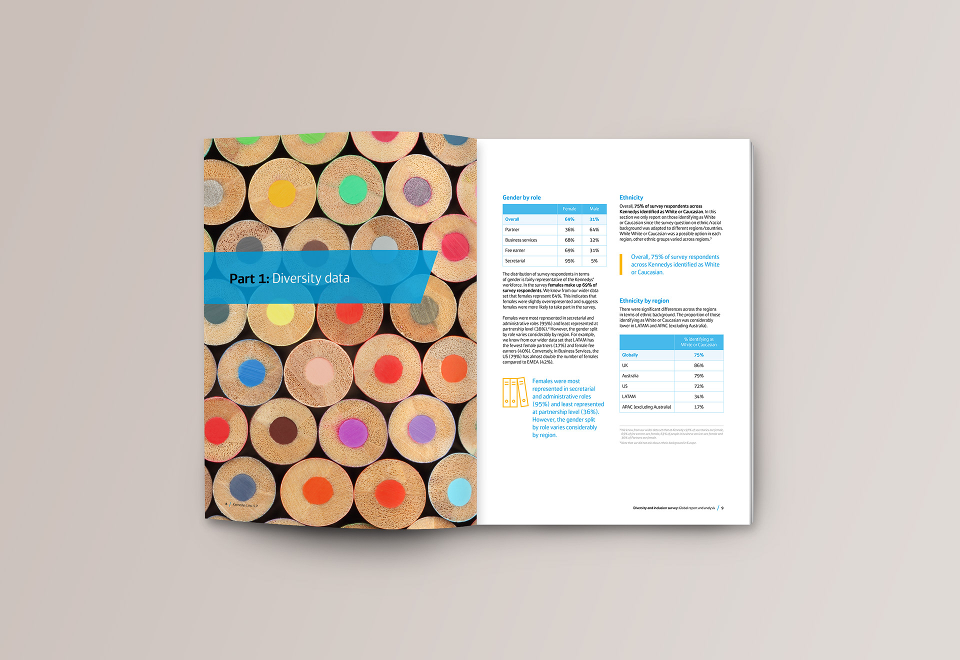 A report based on our recent diversity and inclusion global survey. Working on this allowed me to further develop the branding for this style of reporting.