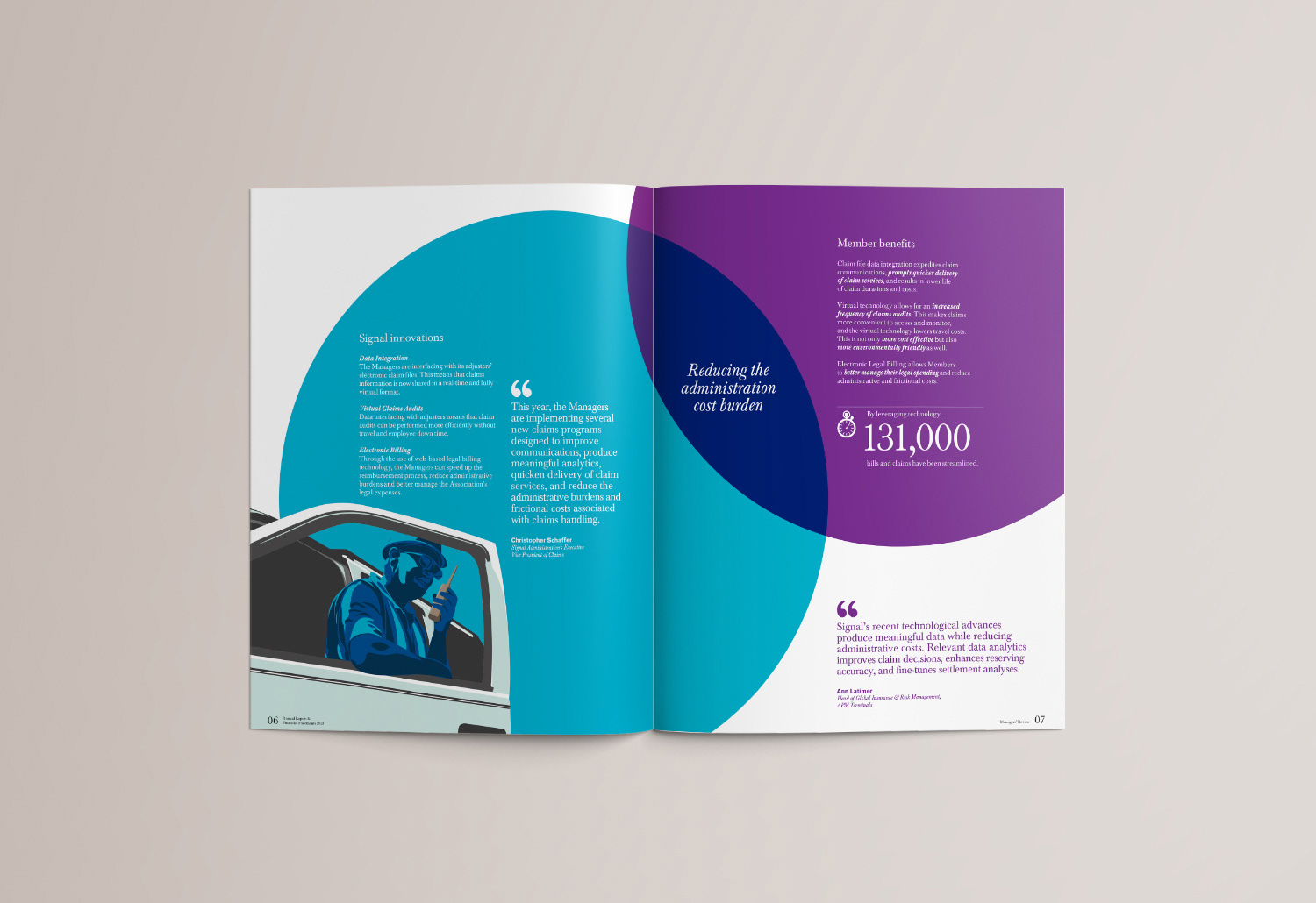 Signal are a US non-profit mutual organisation, authorised by the Department of Labor as a Group Self-Insurer. Working on this report for two consecutive years gave an opportunity for each to have its own bold, induividual style.
